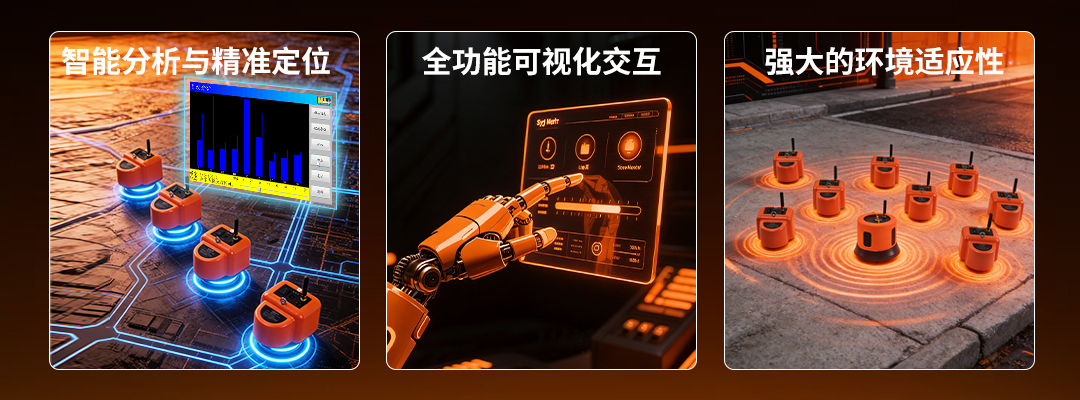 等场景。通过多传感器同步采集管⽹不同点位的泄漏信号,设备能智能⽐对各点位信号强弱差异,⾃动缩⼩异常区段范围,避免传统单点测量中“逐个排查”的低效流程,将异常定位时间缩短 50% 以上。