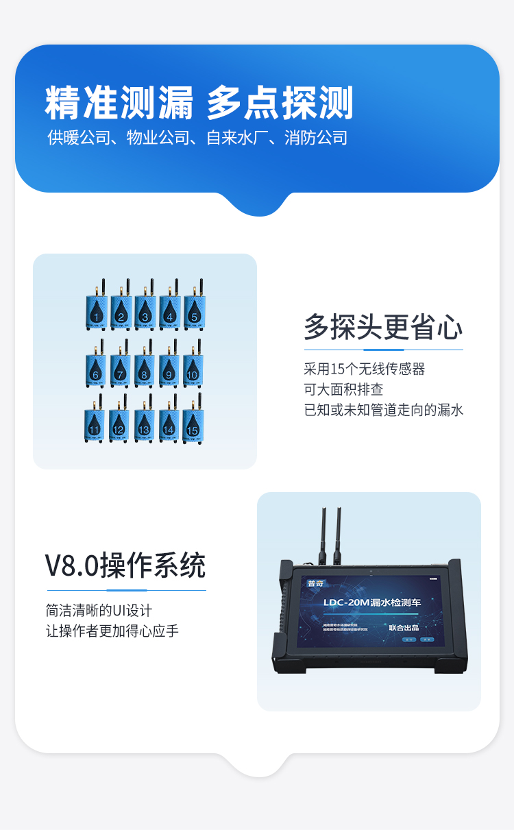 2、适用于大面积快速对供水、供热、消防等管道进行漏水检测和巡查工作。