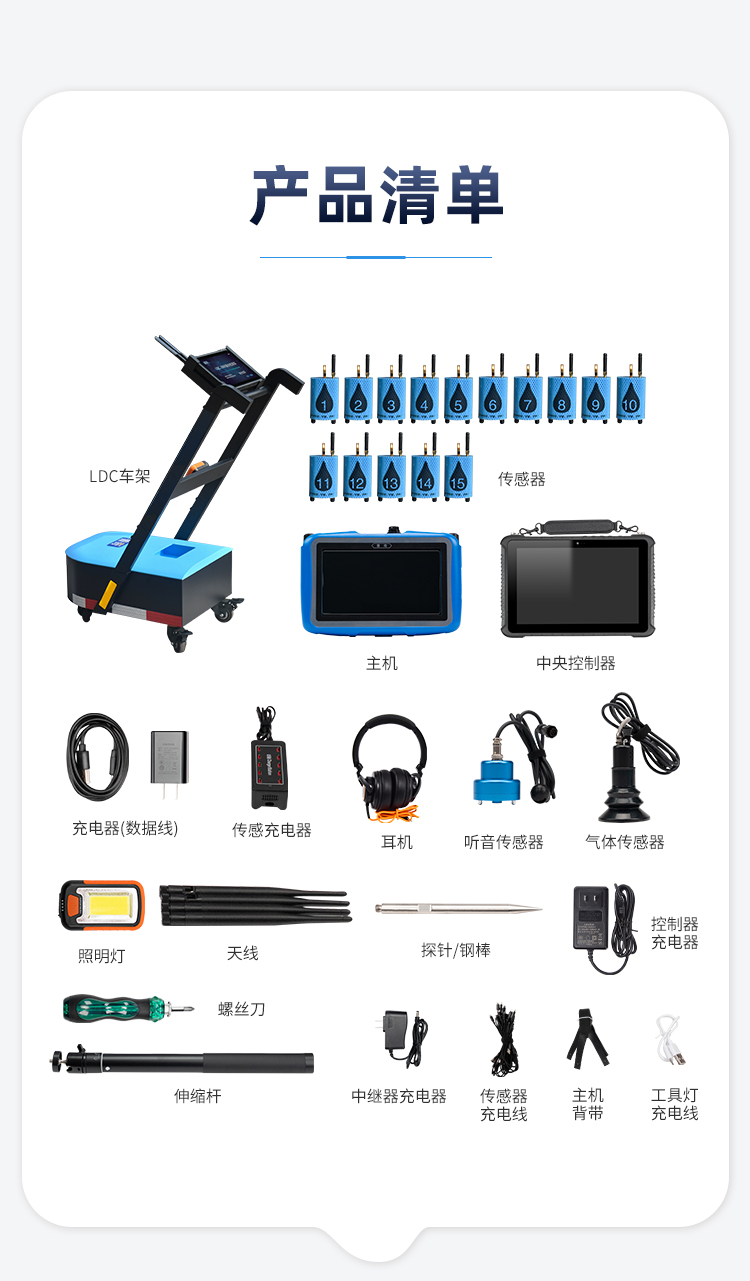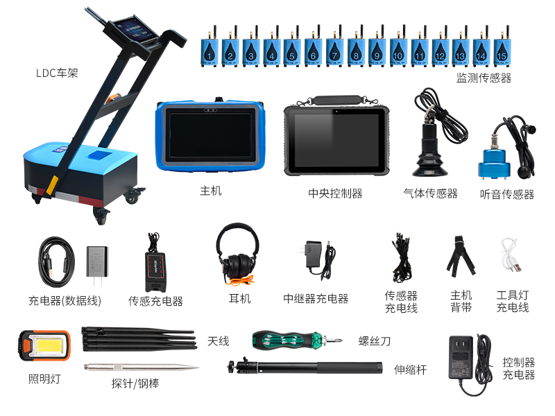 该设备采用B-P算法技术,配备15个无线监测传感器收集不同区域数据,通过信号中继器无线传输到中央控制器进行高效快速分析,从而实现自动判断,自动甄别漏水点。同时还可实时录音,采集的数据可以导出保存,方便测漏报告的制作,这些功能使得巡查管理工作更加的便捷。此设备已获13项发明与实用新型专利授权。