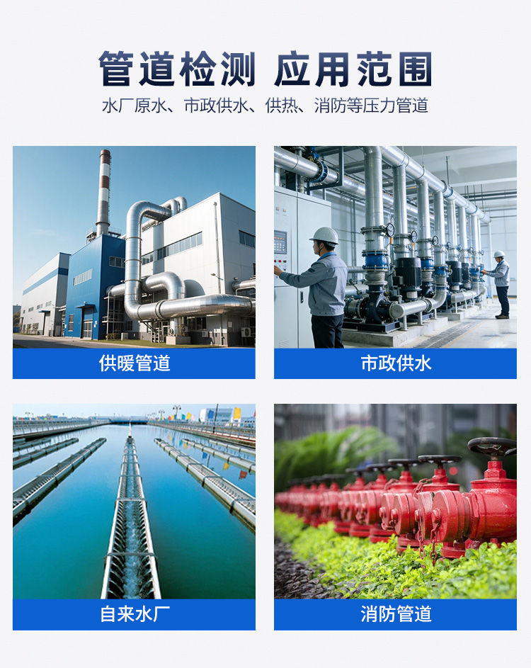 2、适用于大面积快速对供水、供热、消防等管道进行漏水检测和巡查工作。