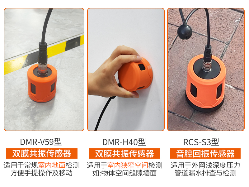 普奇PQ125C系列管道漏⽔检测仪是由我院⾃主研发的新⼀代智能检测仪器,专为市政、消防、热能等压力管道检漏设计。该设备配备三款传感器:其中双膜共振传感器DMR-V59适用于常规室内地面检测,方便手提操作及移动。双膜共振传感器DMR-H40适用于室内狭窄空间检测,比如物体空间缝隙,墙面,其接触面积更多,精准度更高。室外音腔回振传感器RC-S3,适用于管径≤100,埋深达3米管道,可在户外硬质,软质地面,金属,塑料管网检测,遇到松软泥质地面时,可转接听音杆进行检测,适应于外部管道检测需求。